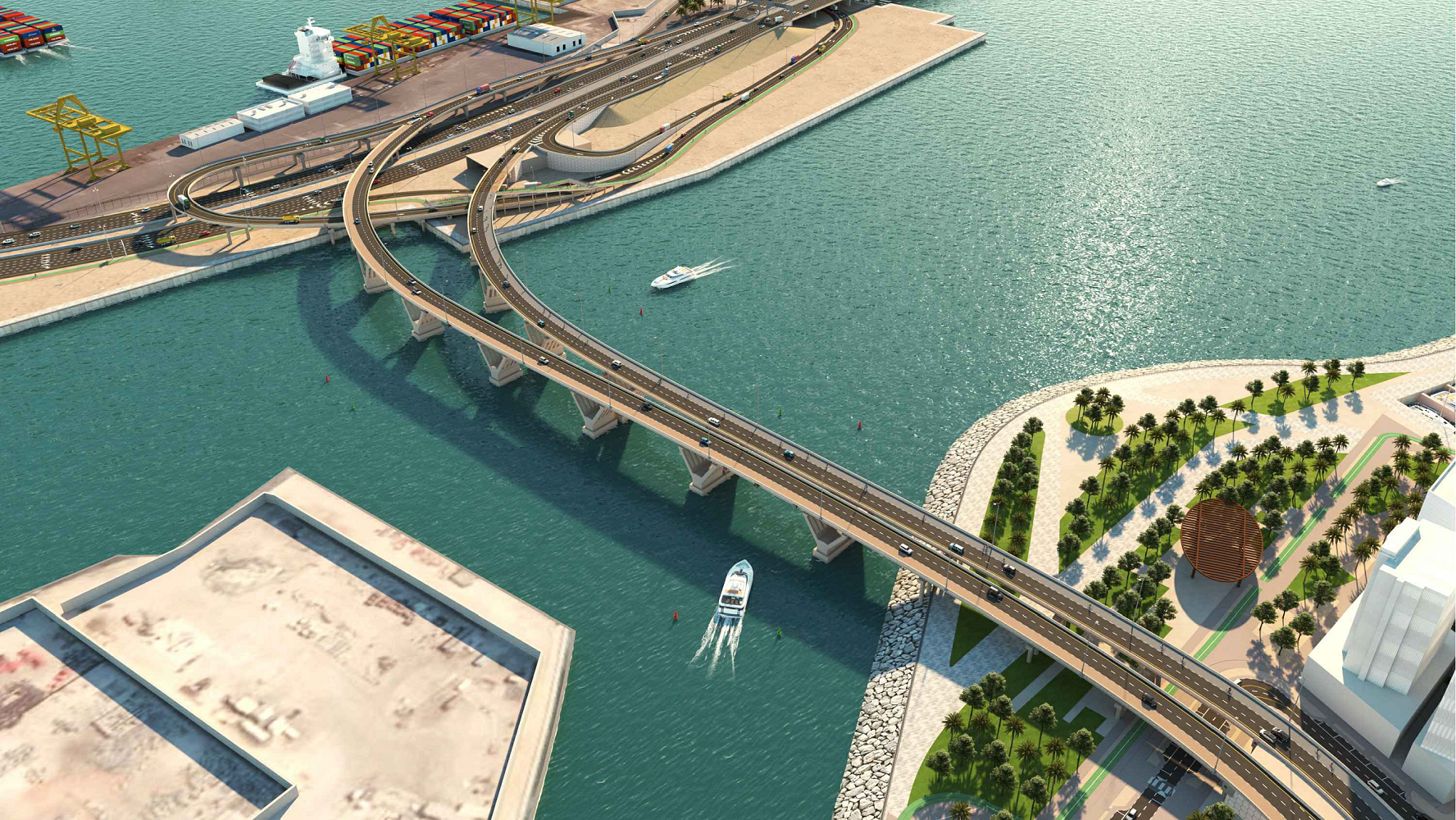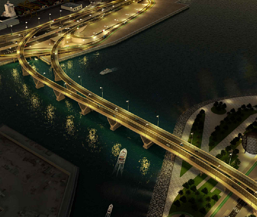 The bridges will serve both inbound and outbound traffic and will enhance and provide alternative connectivity towards Saadiyat Island and onward to Dubai. The total length of bridges is approximately 1,600 m.